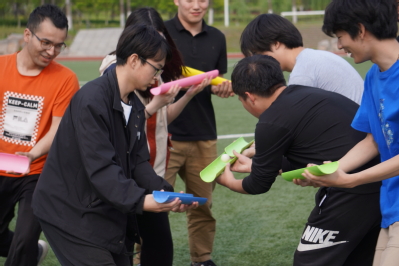 本次素质拓展活动以小组为单位开展活动,共设置了三组,设置“齐心协力”“一圈到底”“不倒森林”“珠行千里”“击鼓颠球”和“合力建塔”六个拓展项目,集运动性、竞技性、趣味性、娱乐性于一体。