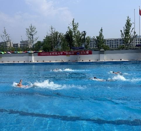 风袭绿波逐浪游,烈日之下,参赛运动员们以矫健的身姿在水中畅游,对奖项的争夺异常激烈,更是出现选手并驾齐驱的场面。本次游泳比赛本着“赛出风格、赛出水平、赛出友谊”的初衷,展现出江科大学子顽强拼搏、挑战自我、协同攻坚、团结有爱的体育精神。