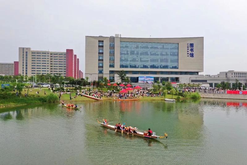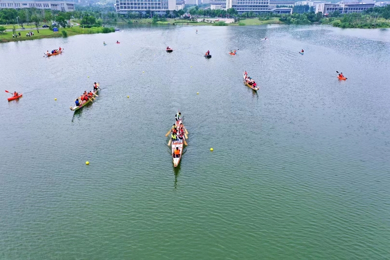 仲夏端午,龙舟竞渡。6月22日,allwincity万象城官方网站首届“龙游端午”龙舟师生联赛在长山校区海韵湖举行。