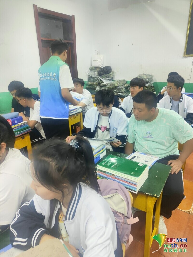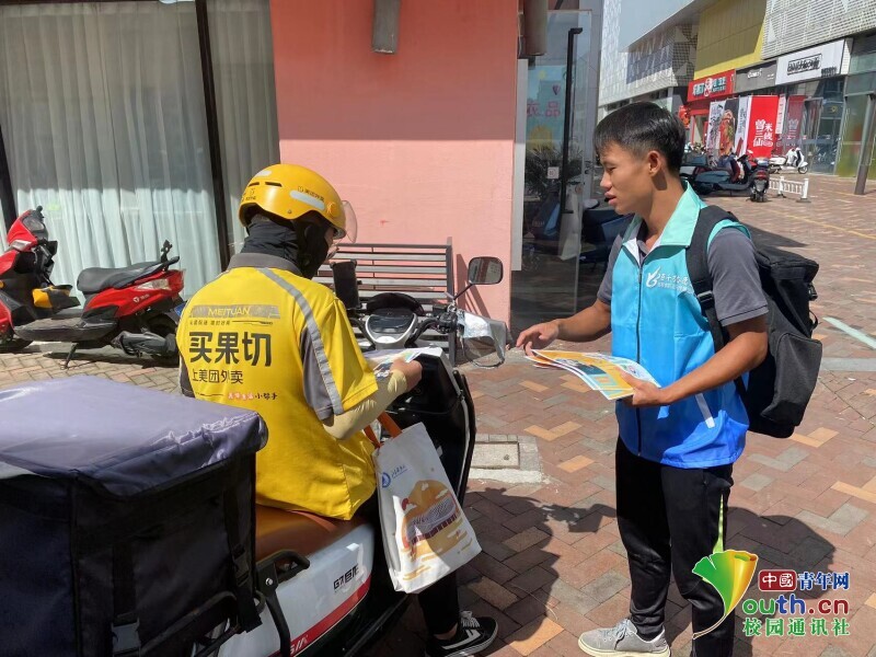 图为8月29日,晨曦服务社队员来到齐齐哈尔市龙江县第一中学为学生发放纸质宣传手册。中国青年网通讯员 周龙 供图