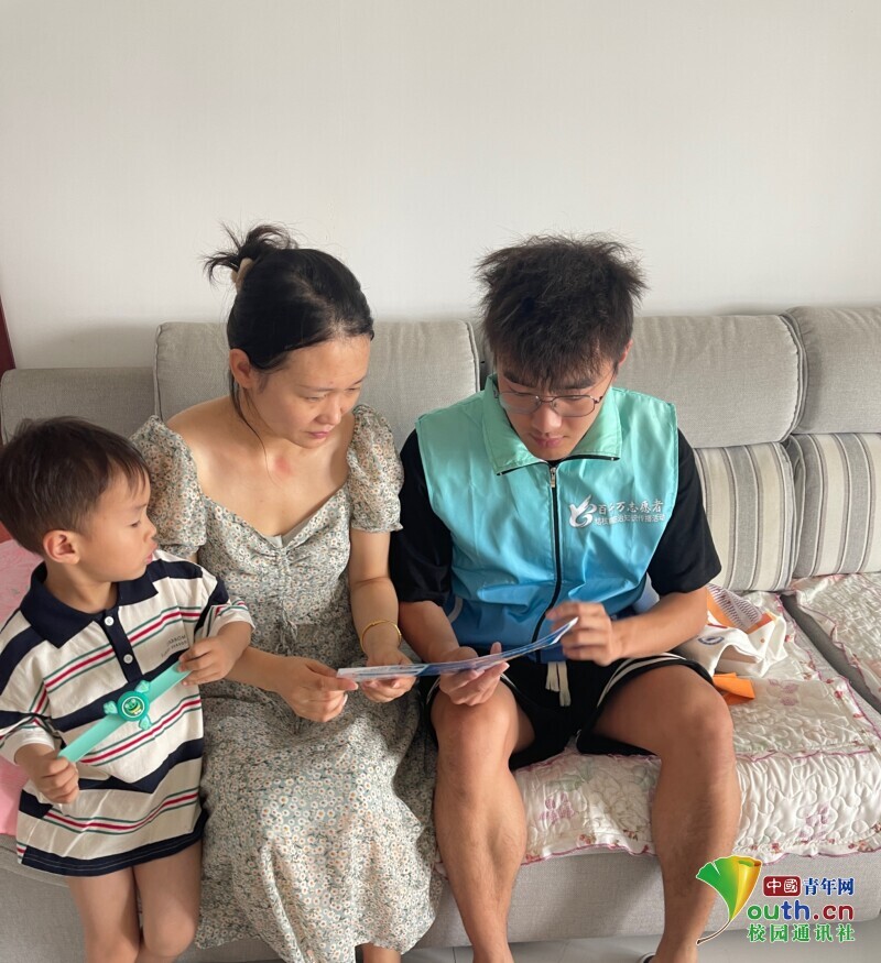 图为8月19日,晨曦服务社队员在盐城市盐都区凤麟府小区进行随访慰问宣传,在居民家中讲解防治结核病知识。中国青年网通讯员 周龙 供图