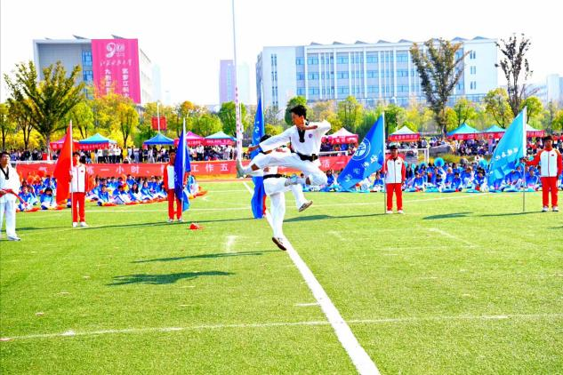 而后跆协成员为运动会准备的自由品势节目也在绿茵场上精彩上演。首先亮相的是品势表演,气势磅礴,刚劲雄健。紧接着,后空翻、旋风踢、飞侧以及组合腿法完美呈现,让人叹为观止,每一个动作都凝聚着跆拳道成员的热爱与努力,展现出了当代大学生的勇敢、顽强和坚毅等精神。