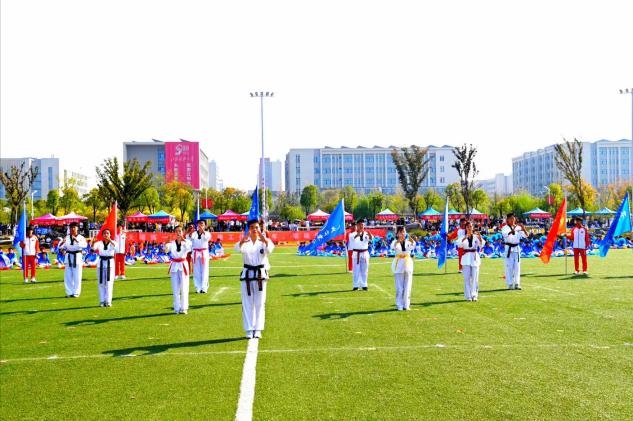 11月4日上午,运动会开幕式正式开始,开幕式上,跆协副会长白蕾琪同学作为所有运动员代表宣誓,宣誓声铿锵有力,展现出当代大学生运动员的精神风貌。