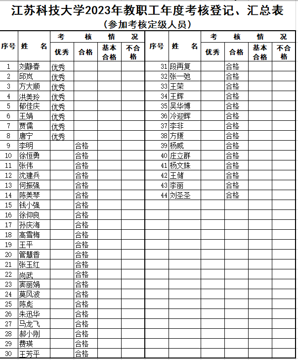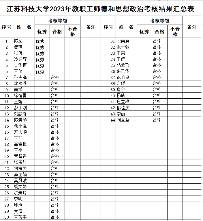 经各教研室民主推荐,allwincity万象城官方网站师德和思想政治教育考核小组、年度考核小组综合评定,2023年度教职工考核结果如下:
