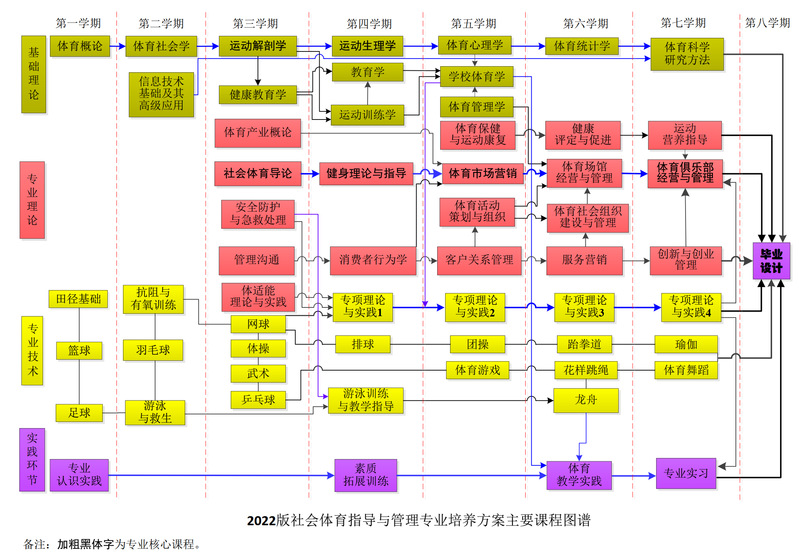 专业核心课程:运动解剖学、运动生理学、社会体育导论、健身理论与指导、体育市场营销、体育俱乐部经营与管理。