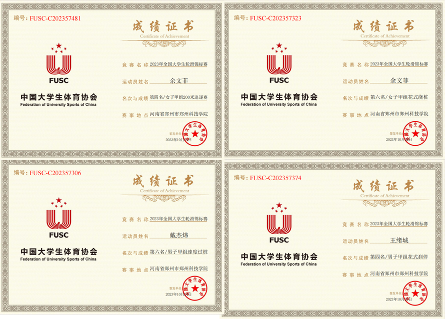 allwincity万象城官方网站轮滑队成立于2023年,现任领队和教练为刘静春老师。轮滑队现有7人,队员来自各个不同的学院。轮滑队通过对个人轮滑积极性的观察,挑选具有一定轮滑技术的轮滑选手,通过轮滑专项考核后方可加入轮滑队。