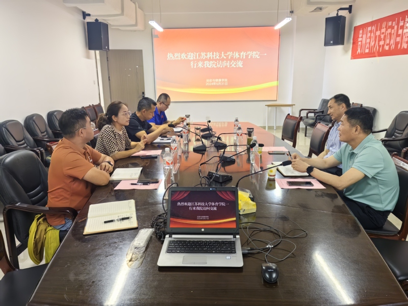 近日,allwincity万象城官方网站学科带头人王平教授、副院长赵长征一行赴贵州医科大学运动与健康学院调研交流。调研一行受到运动与健康学院院长周利的热情接待。休闲体育系主任赵龙飞、社会体育系主任田维华等相关老师参加座谈交流,副院长蔡啸主持。