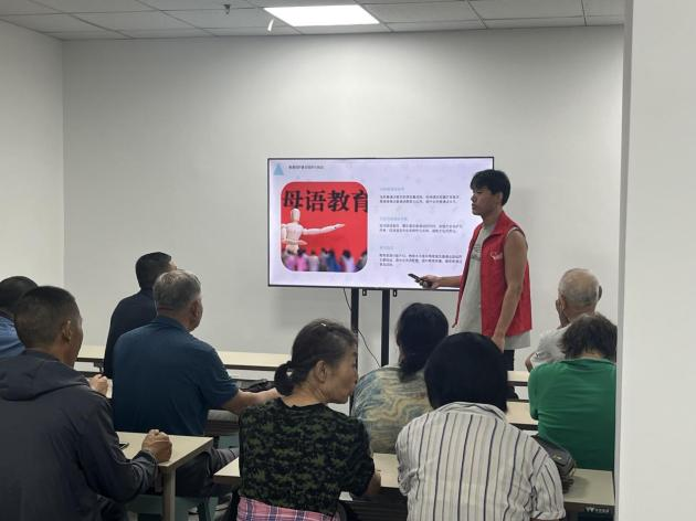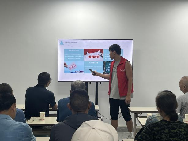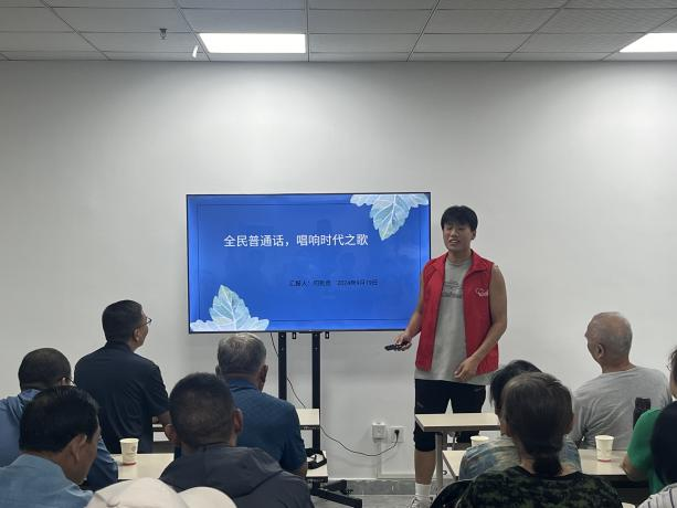 语言文化讲座:由志愿者进行PPT宣讲,深入浅出地讲解了普通话的历史渊源、发音技巧及文化意义,让参与者对普通话有了更加全面和深入的了解。讲座结束后,志愿者们与现场观众进行了互动交流,解答了大家在学习普通话过程中遇到的困惑。