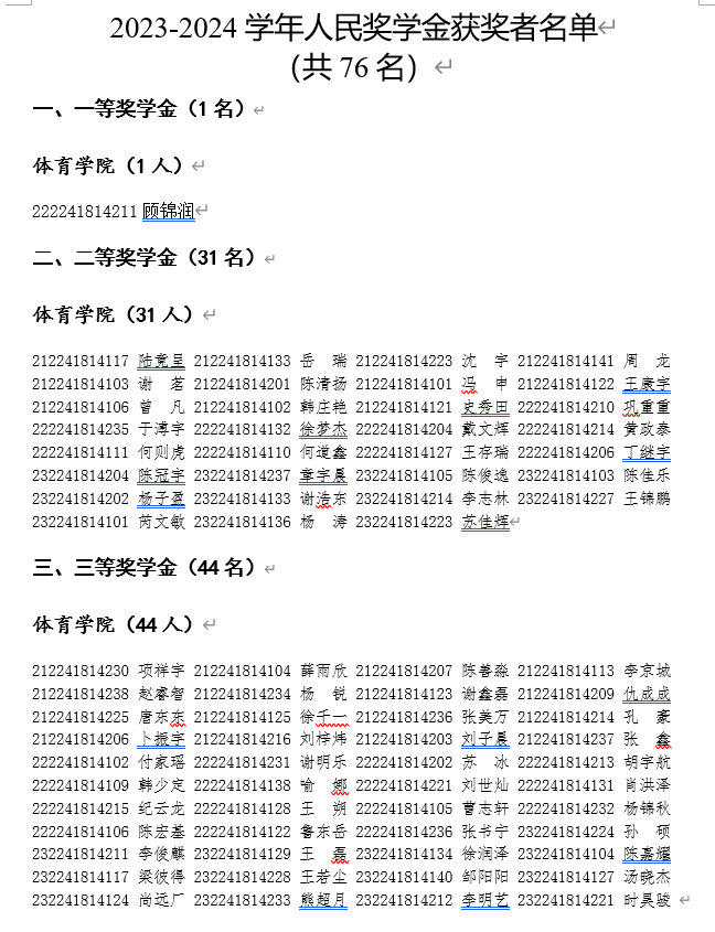 经个人申报、班级初评、学院审核,现将2023-2024学年人民奖学金拟获奖名单予以公示,名单见附件。