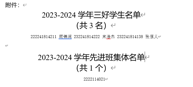 经个人申报、班级初评、学院审核,现将2023-2024学年三好学生、优秀班集体拟获奖名单予以公示,名单见附件。