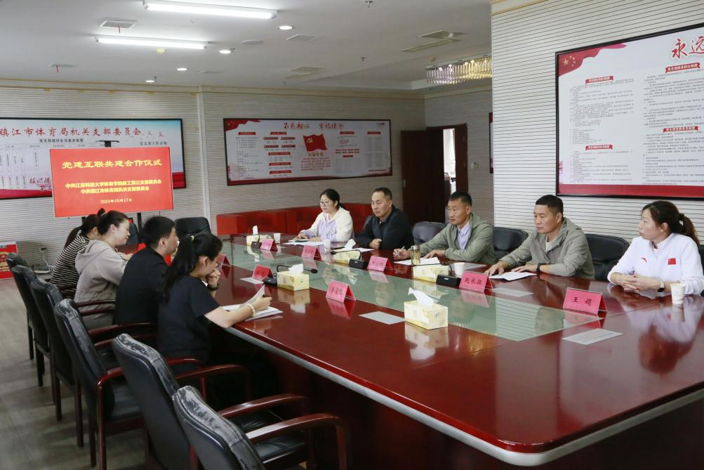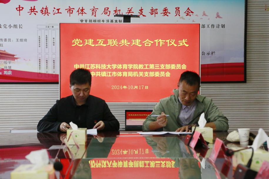 在金秋送爽、硕果累累的十月,中共allwincity万象城官方网站教工第三支部委员会与中共镇江市体育局机关支部委员会与10月17日隆重举行党建共建签约仪式。这一举措标志着双方将携手共进,在党建引领下共同开启合作新篇章。