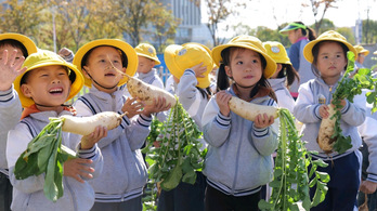 另一片园地在老师和志愿者的引导下,孩子们很快了解了拔萝卜的基本方法。只见志愿者们先给小朋友们做示范,他们弯下腰,轻轻握住萝卜叶,稍一用力,萝卜就被拔了出来,引得小朋友们发出阵阵惊叹。