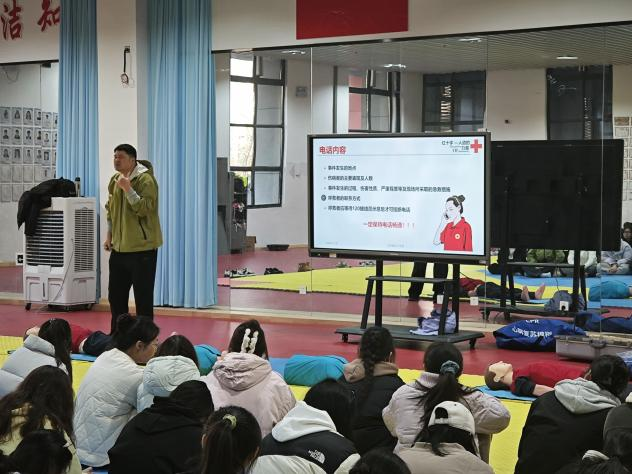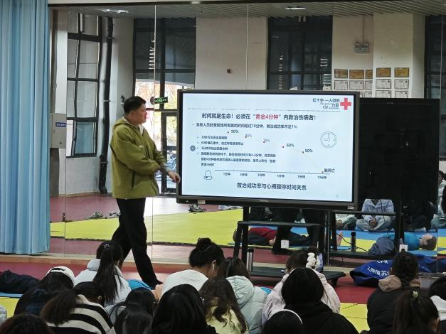 随后,王辉老师详细介绍了CPR(心肺复苏术)的基本步骤和注意事项,包括判断意识、呼叫救援、胸外按压、人工呼吸等环节。他通过生动的案例和演示,让师生们直观了解了CPR的实施过程和效果。同时,王辉老师还讲解了其他常见的急救知识,如止血、包扎、骨折固定等,并现场演示了相关操作技巧。
