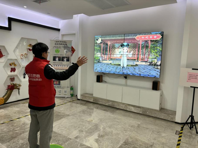 在互动体验环节,团队成员踊跃参与。博物馆通过Ai全息影像技术,打造一款与“白娘子”深入互动的游戏,使我们能够以更加生动的方式了解和体验白素贞的历史传奇,实现了一场跨越时空的对话。通过本次互动,我们也意识到新质生产力赋能传统文化遗产的重要性,在今后更好地利用科技保护和传承传统文化,助力非遗文化在新时代焕发新的生机与活力。