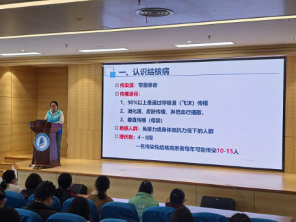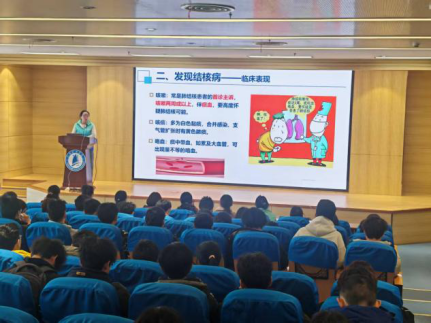 第一个环节,镇江市第三人民医院的专家在学校图书馆B102报告厅举办了一场防治结核病健康教育知识讲座,他们通过生动的案例、详细的数据和专业的讲解,向在场师生深入浅出地介绍了结核病的传播途径、症状表现、预防措施以及治疗方法。