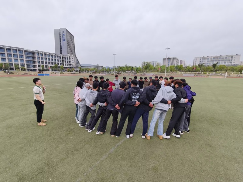 活动尾声,参与者围坐分享感悟。“当大家为同一个目标倾注全力时,焦虑和压力都转化成了动力。”2024级新生张宸铭坦言。学院心理工作辅导员陈栋表示,此次素拓活动通过具身体验深化了“团队力即心理免疫力”的育人理念,未来将持续创新形式,将心理育人融入体育专业特色。