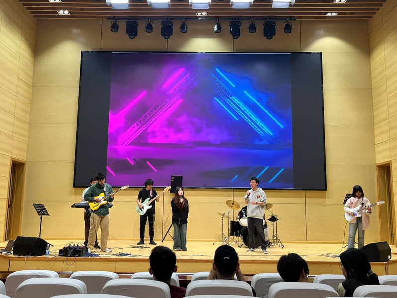 乐队表演更是成为全场焦点。架子鼓的强劲节奏、电吉他的激昂旋律与主唱富有穿透力的嗓音完美融合,摇滚、流行等多元风格的曲目接连上演。现场音浪与观众的呐喊交织,乐队成员全情投入的演出,展现出青年学子的无限活力与音乐热情。